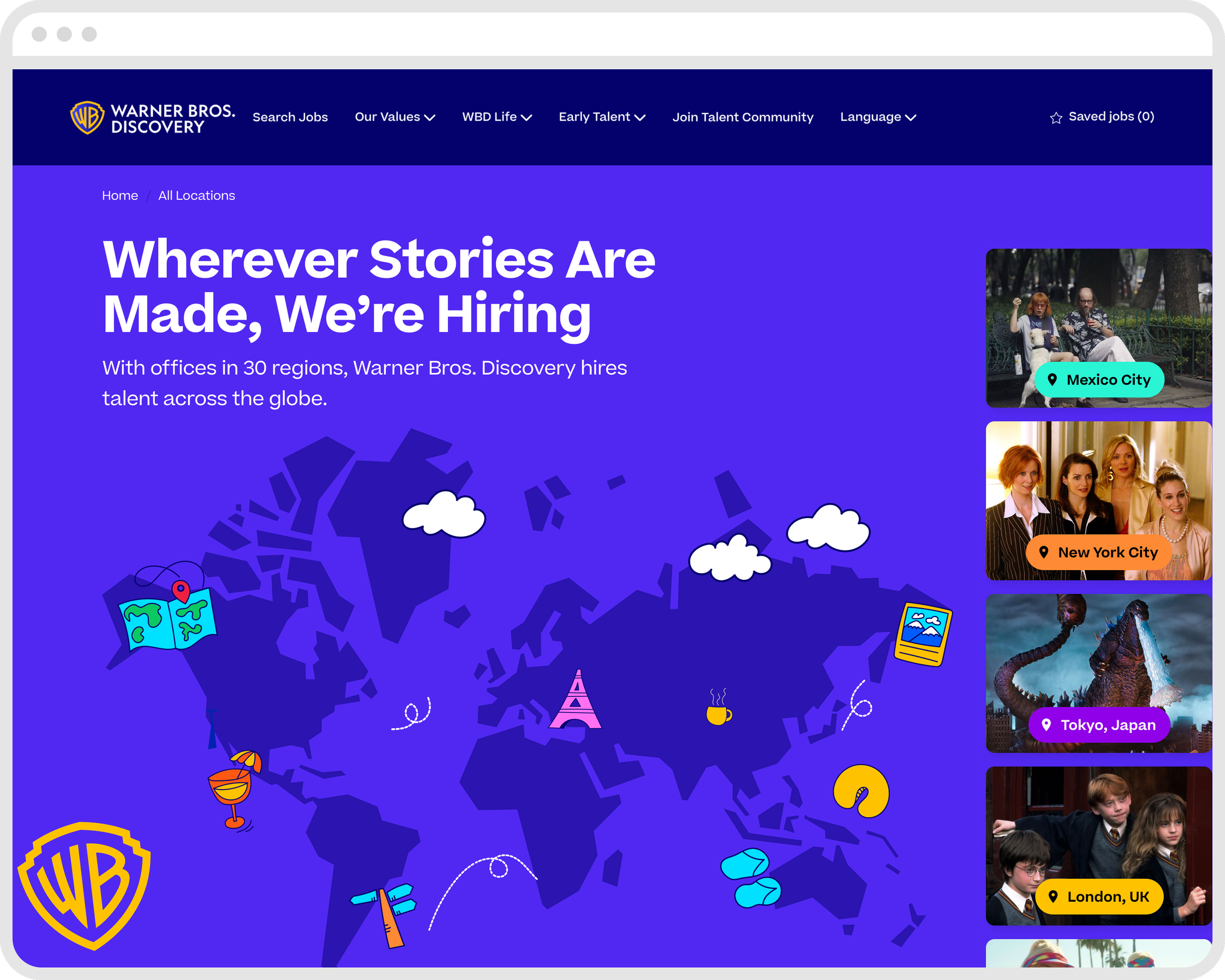 Warner Bros. Discovery partnered with our team to redesign its careers experience, with an initial focus on three core page types: Locations, Teams, and Brands. What began as a templated redesign quickly evolved into a broader rethinking of how People and Culture content should be introduced, connected, and experienced across the site.